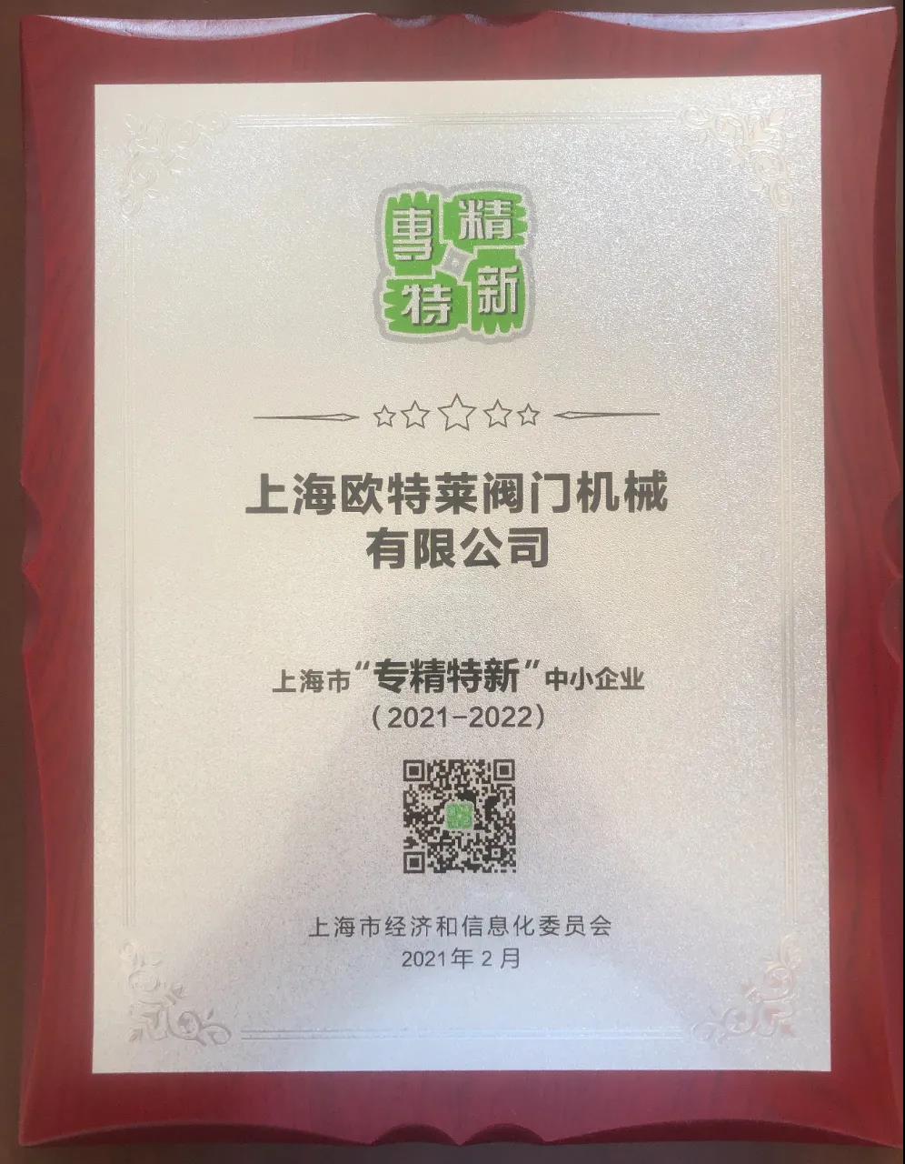 上海歐特萊閥門(mén)榮獲上海市專精特新企業(yè)及英國(guó)WRAS認(rèn)證!